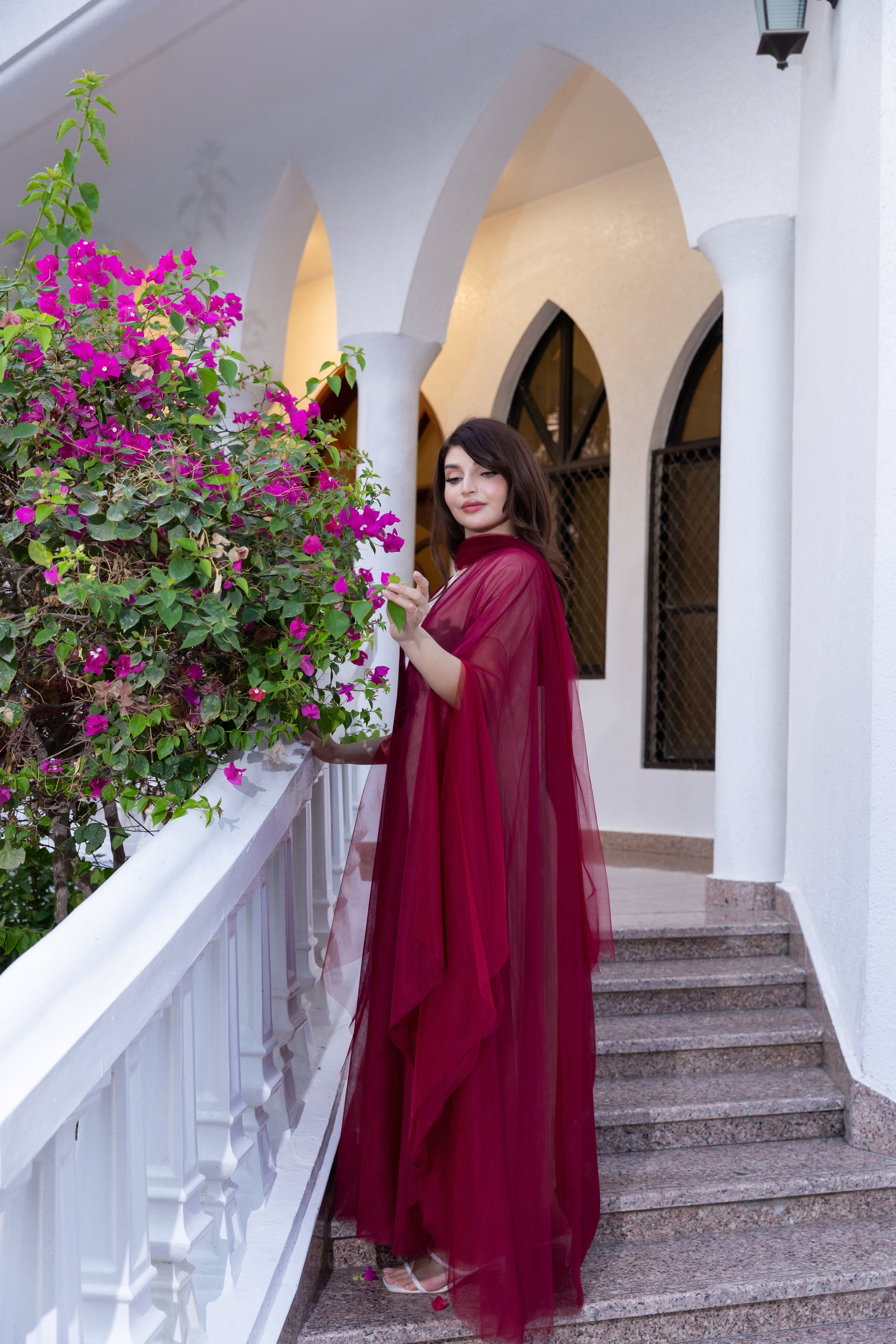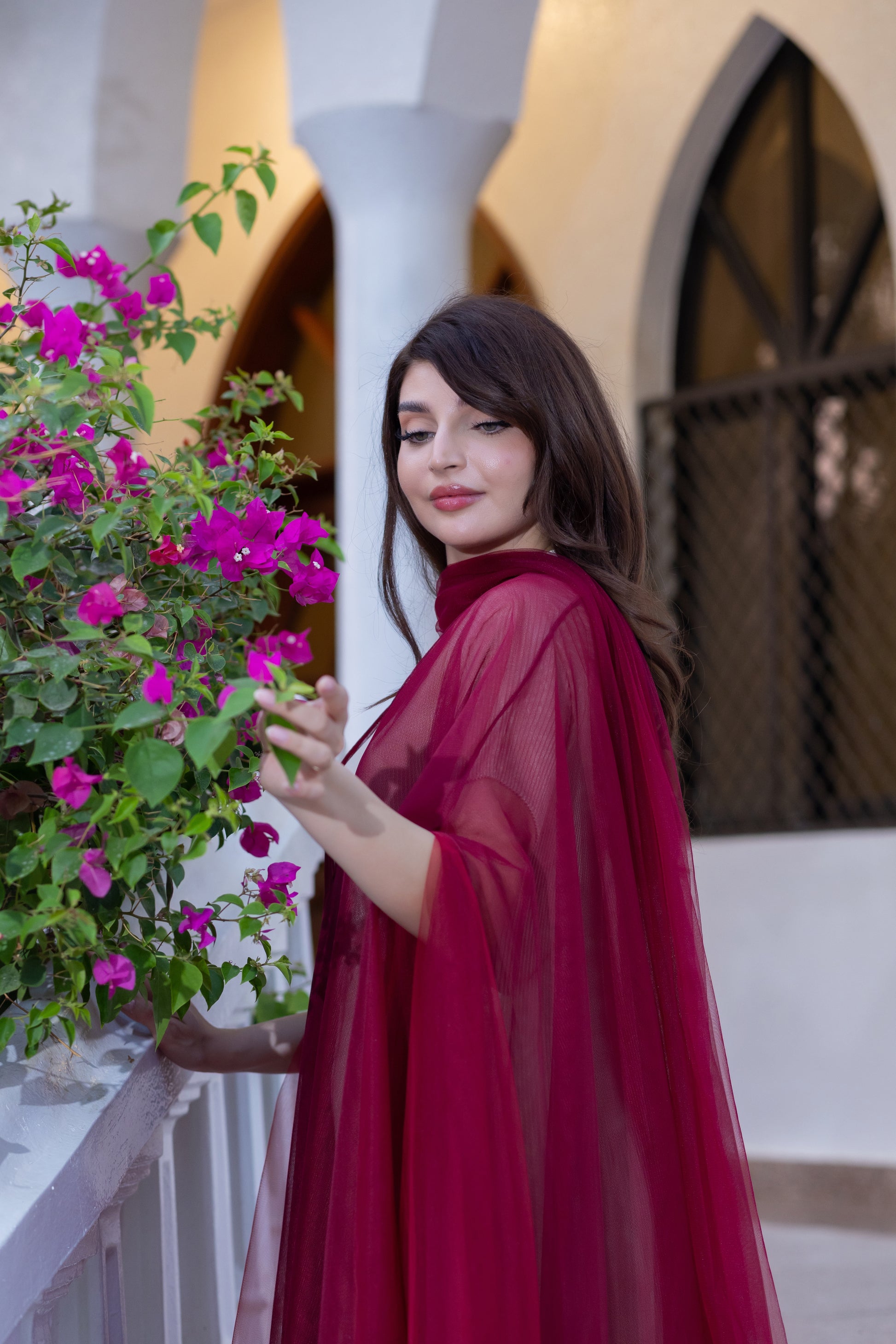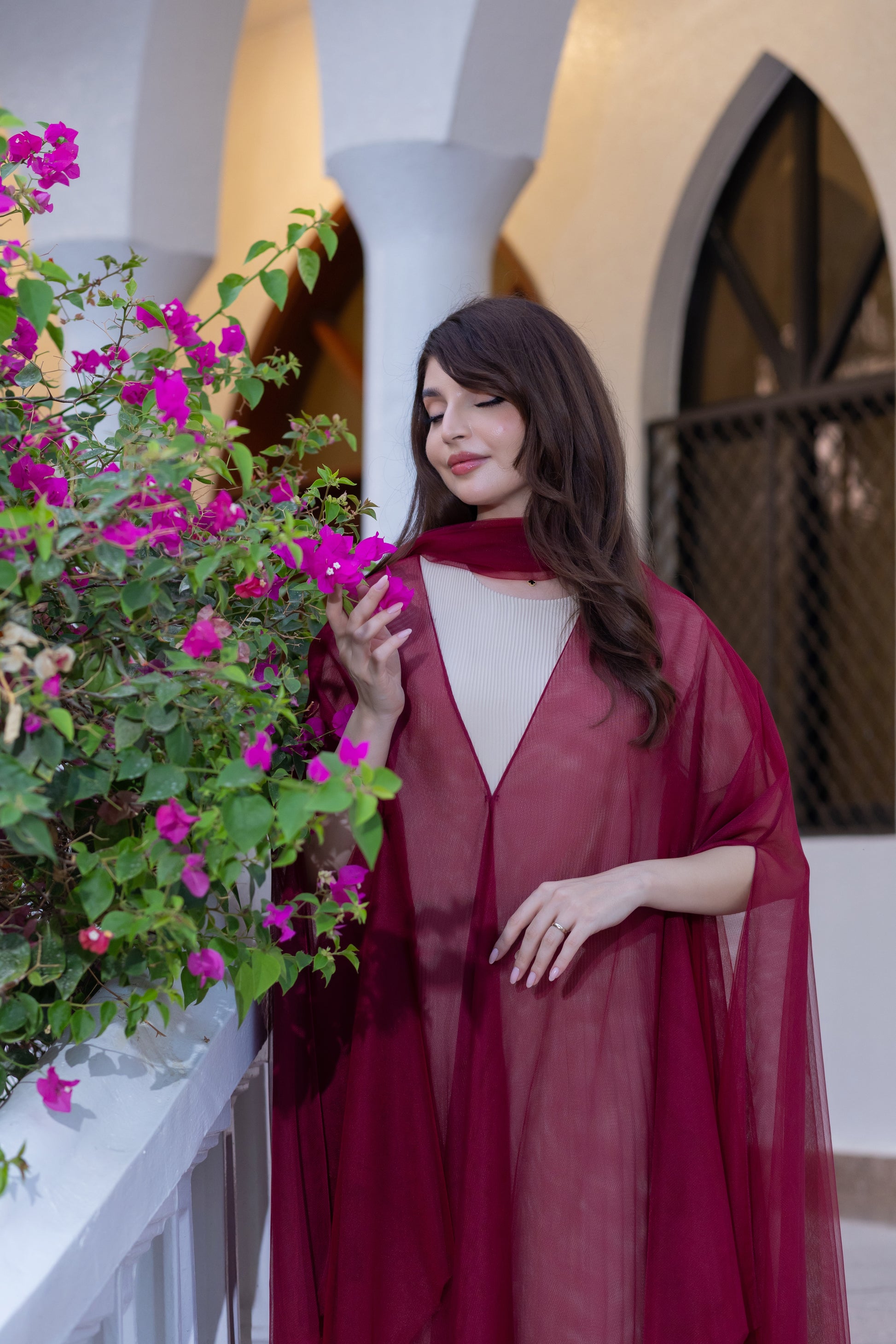 تألقي بإطلالة لا تُنسى مع هذه العباءة الجريئة بتصميمها على شكل كاب. مصنوعة من قماش تول أحمر ياقوتي خفيف الوزن أو قماش شبكي شفاف، تُضفي هذه القطعة لمسةً آسرةً متعددة الطبقات على ملابسك الداخلية. تصميمها مفتوح وواسع، مما يسمح للألوان الغنية والقماش الرقيق بالتألق مع كل خطوة. مثالية لإضافة لمسة جريئة من الألوان والفخامة إلى الأمسيات والمناسبات الاحتفالية.