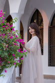 تألقي بقمة الأناقة مع هذه العباءة الرقيقة. تتميز بتصميم مفتوح مصنوع من طبقات متعددة من التول الشفاف خفيف الوزن. يمنحكِ هذا التصميم انسيابية رائعة وواسعة وحركة مثيرة أثناء المشي. بفضل انسيابيتها الآسرة وطبقاتها الأنيقة، صُممت هذه القطعة لتكون إضافة فاخرة للمناسبات الكبرى وحفلات الاستقبال الراقية والاحتفالات الخاصة.