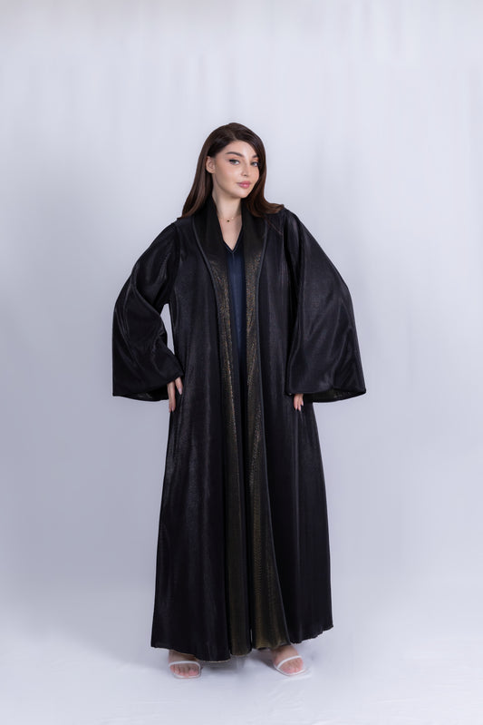 This stunning black abaya serves as an essential, high-impact layering piece. It features a voluminous,...