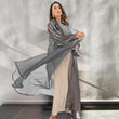 This elegant abaya is crafted from delicate organza fabric and beautifully enhanced with intricate handwork. The soft grey color adds a refined and graceful look, while the shimmering details make it perfect for special occasions.
